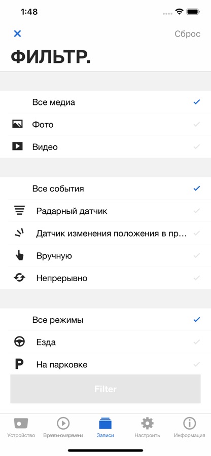 Приложение Advanced Car Eye 2.0 – это монитор и центр контроля для камер. Оно позволяет просматривать и загружать отснятые фото и видео, а также записывать видео и фотографировать в ручном режиме.
