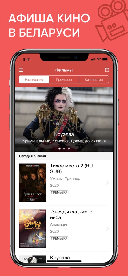 Приложение Афиша — ваш гид в мире кино Беларуси. В нем вы можете найти актуальное расписание кинопроката, информацию о кинотеатрах с телефонами и адресами, купить билет не выходя из дома.