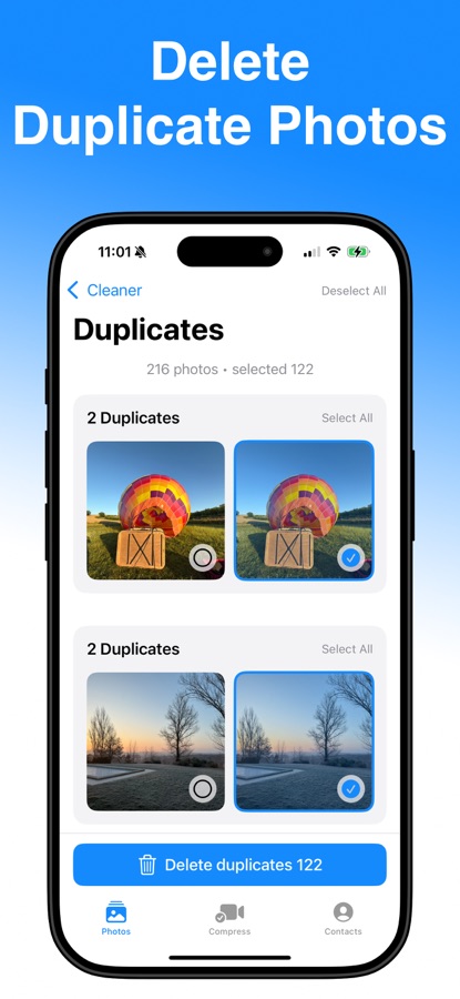 Photo Cleaner легко определяет и удаляет дубликаты из вашей библиотеки, минимизируя ваше участие. Наш алгоритм анализирует схожие изображения и выбирает лучшее для сохранения. Это освобождает место без необходимости решать, какие снимки оставить.