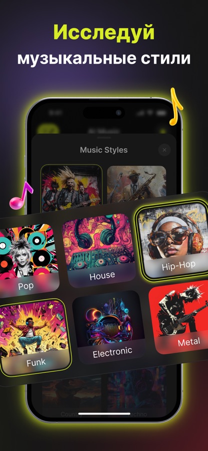 • Выберите музыкальный жанр — от классики до современных стилей.