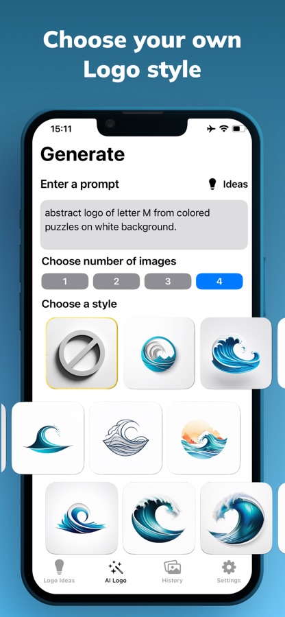 — Четыре варианта выбора: каждый запрос генерирует до 4 уникальных вариантов логотипа для вашего выбора.