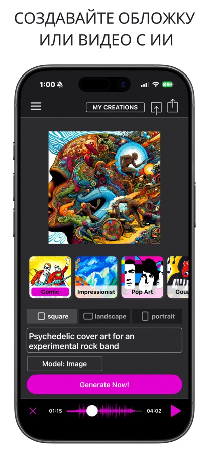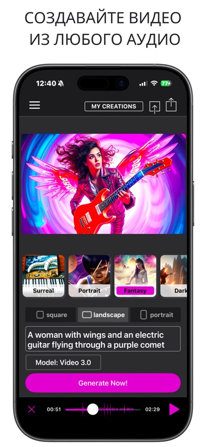 Выберите стиль, импортируйте аудио и создайте видео. Экспортируйте и делитесь! Пусть магия происходит!