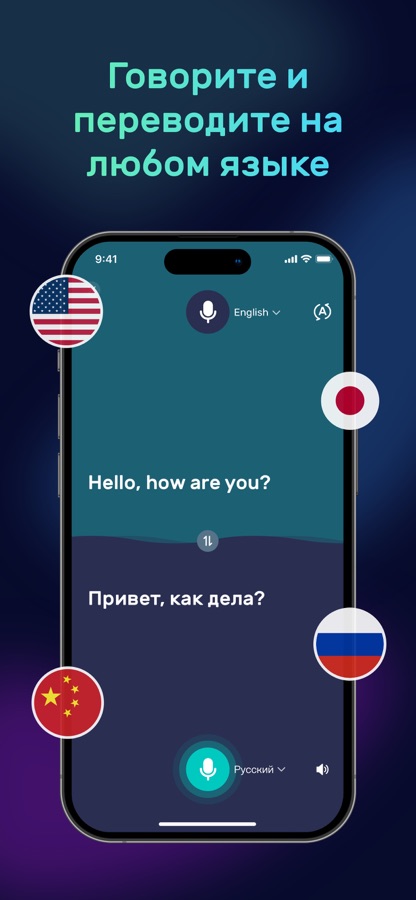 • Голос в голос: говорите и слушайте перевод в вашем или выбранном голосе в режиме реального времени.