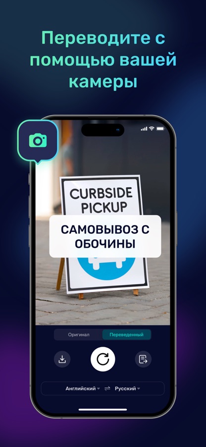 • Перевод с камеры и фотографий: делайте снимки или загружайте фото для перевода меню, вывесок, этикеток, упаковок и др.