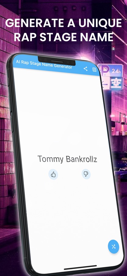 Introducing the AI Rap Name Generator — the ultimate app for aspiring rap artists and music enthusiasts! With our state-of-the-art artificial intelligence technology, you can easily create a unique and catchy rap name that perfectly represents your style and persona.