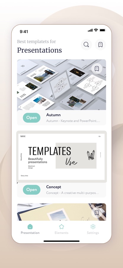 SLAIDES — это простое и удобное приложение для создания привлекающих внимание презентаций. Он предлагает доступ к множеству красивых шаблонов с продуманной структурой.
