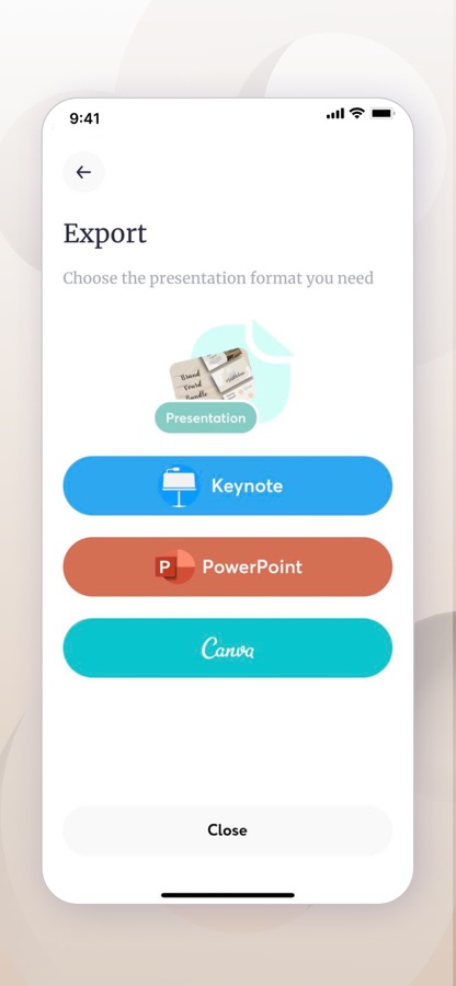 Добавьте направление презентации и детали, чтобы выделить их, и наш чат-бот Genius AI сделает все остальное за вас за считанные секунды.