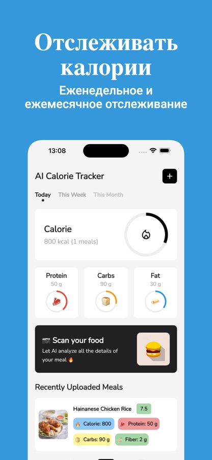Сканируйте еду с помощью камеры телефона и анализируйте ее калорийность, количество жиров, белков, клетчатки и всю пищевую ценность.