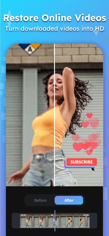 Самый профессиональный усилитель качества видео на рынке. Всего одним касанием вы можете сделать все видео более четкими, а разрешение может достигать 4K. Если вы хотите улучшить свои селфи, аниме, 2D- и 3D-мультфильмы, черно-белые фильмы или даже все видео, загруженные с Tiktok и Youtube, HiQuality может помочь вам улучшить разрешение до HD-видео с помощью самого передового алгоритма Al. Приходите и начните улучшать свои видео!