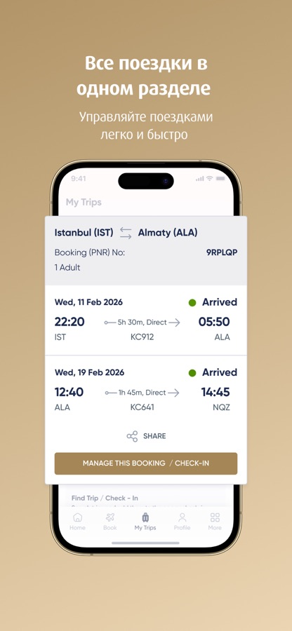 • Быстрый доступ к предстоящим перелётам