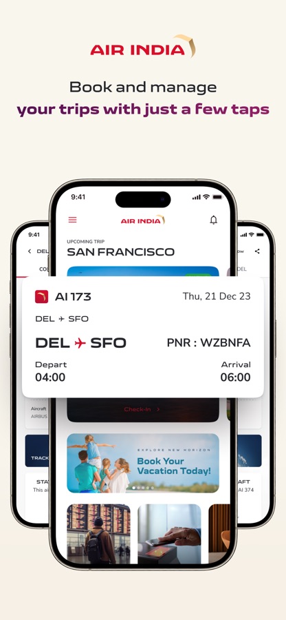Easily book flights, manage trips, receive timely check-in reminders and gate notifications – the new and improved Air India app is designed to make your journeys simpler and enjoyable. With just a few swipes, you can instantly access your flight details, complete web check-ins, do flight upgrades and much more. Download the app now and start enjoying a faster and seamless flight booking experience!