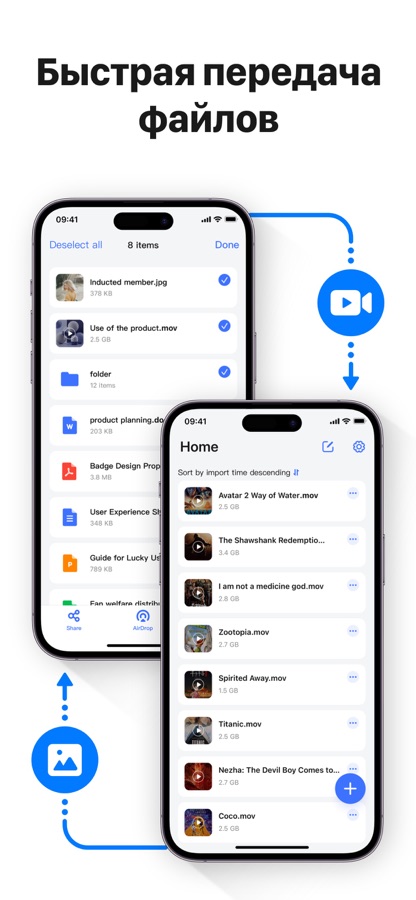 — Transfer and share all kinds of videos, photos, audio, etc.