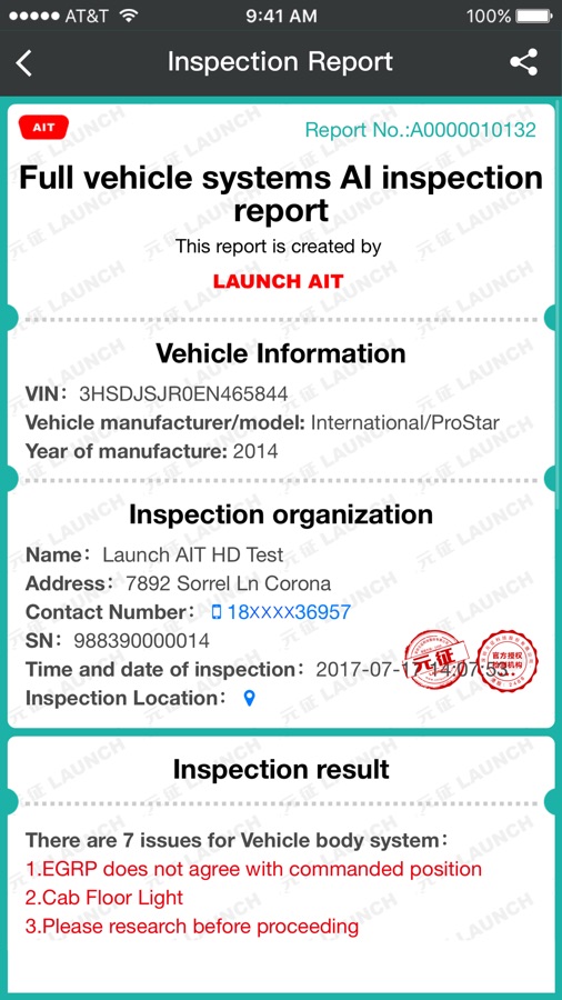 A complete professional inspection report allows you to easily identify the working status of the vehicle status.