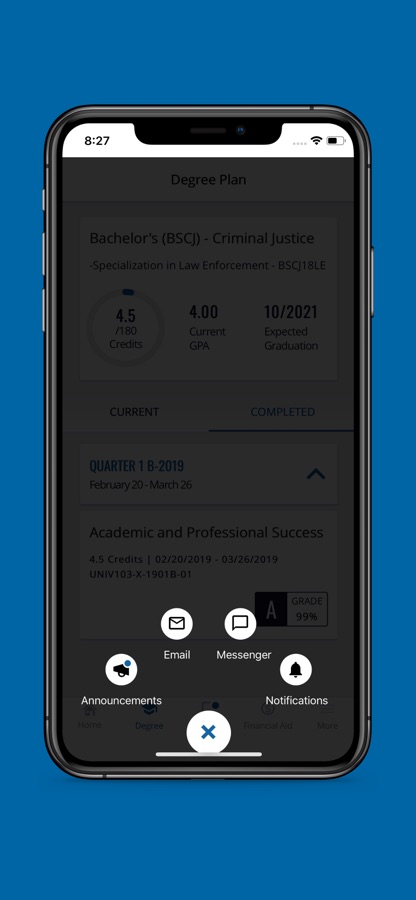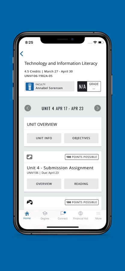 CONNECT: Read your class announcements, find all your notifications in one place, message with faculty, classmates, and advisors, and connect to your email from one place in the app