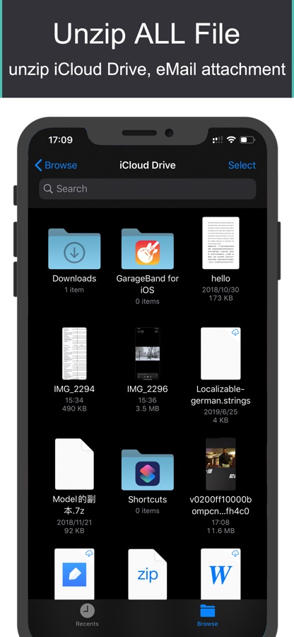 [Управление сжатыми файлами]: вы можете напрямую извлекать и распаковывать сжатые файлы iCloud / Dropbox. Вы можете импортировать сжатые файлы в другие приложения, такие как электронная почта.