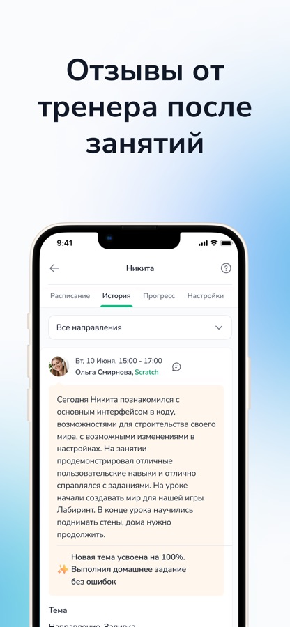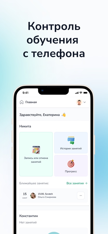 ● следите за успехами ученика — контролируйте прогресс, смотрите, какие проекты выполняет ребенок и получайте обратную связь от тренеров;