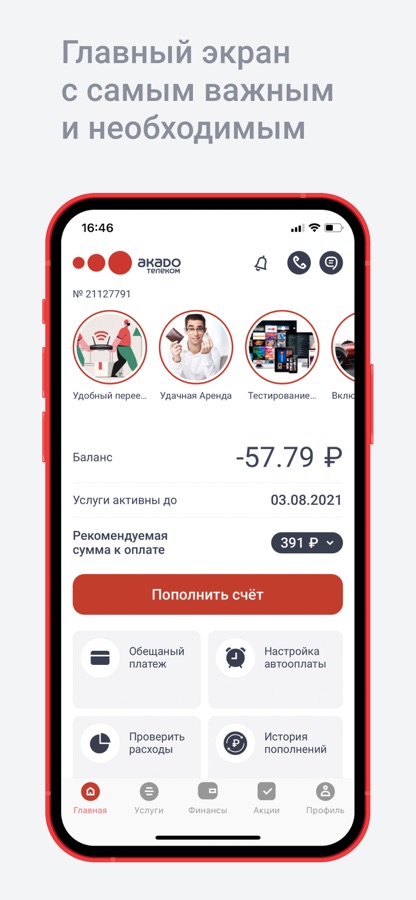 «АКАДО Личный кабинет» – приложение для быстрого доступа к наиболее популярным функциям личного кабинета абонента АКАДО.