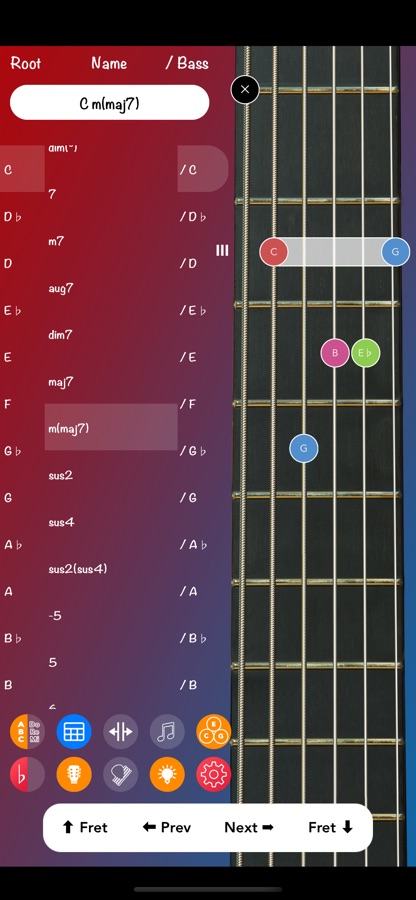 Исследуйте тысячи гитарных аккордов, каждый из которых отличается разным звуком и вариациями. Вы сможете улучшить свой музыкальный талант и расширить свои знания о гитарных аккордах. Просто выберите корень аккорда и название аккорда, затем просмотрите все фигуры, формы и звучание этого конкретного аккорда. Легко переходите к следующему ладу с быстрым нажатием кнопки!