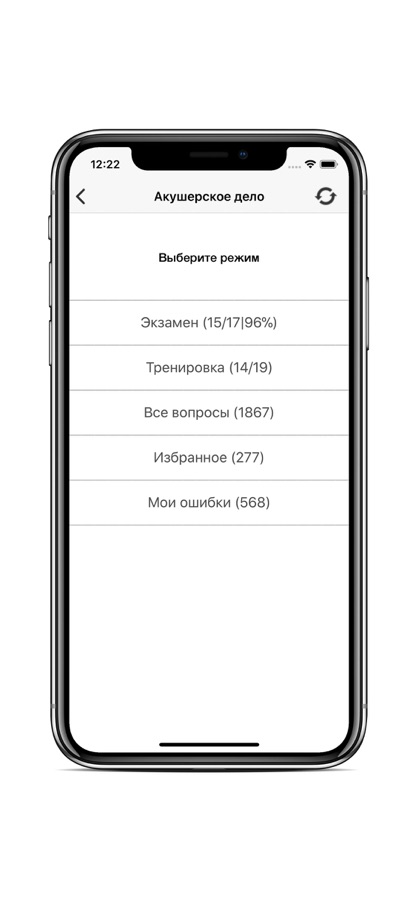 ► Раздел «ЭКЗАМЕН» — 60 случайно выбранных вопросов из опубликованного минздравом списка, в точности воспроизводящих первый этап аккредитации, за исключением ограничения по времени, с возможностью повторно «ВЕРНУТЬ ОШИБОЧНЫЕ».