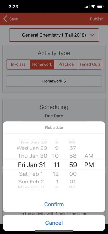 • Create in-class or homework assignments — Perfect for clicker, recitation, or review problems. Students receive push notifications to alert and remind them of pending assignments.