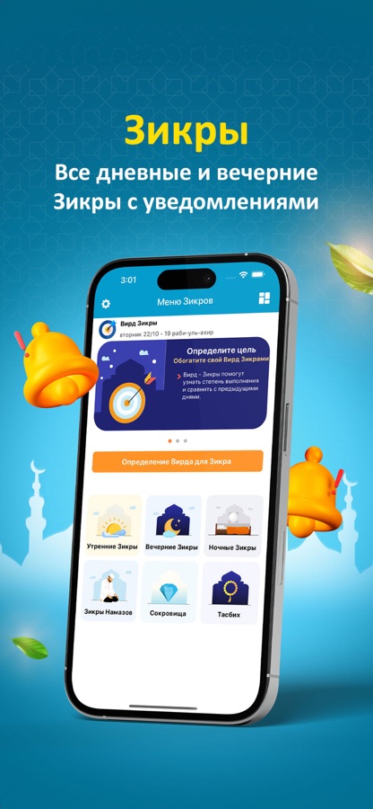 Сокровищница Зикров: Регулярно поминайте Аллаха и получайте благодать на весь день .Повторяйте Зикры по утрам и вечерам, перед сном, после намазов и по другим поводам, с ежедневными уведомлениями. Пусть Зикры будут с вами всегда.