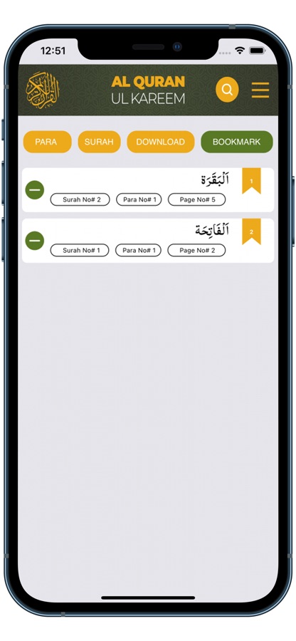 List of Bookmarks will be shown in this section. Bookmarks can be easily added while reading any page of Quran by clicking on Book Mark Icon on the Top of the page.