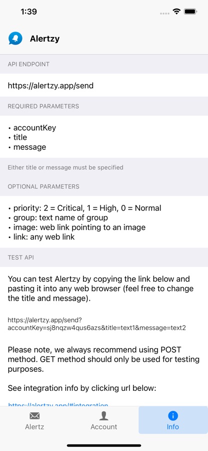 Пожалуйста, прочтите инструкции на https://alertzy.app/#integration, чтобы получить дополнительную информацию и увидеть примеры кода.
