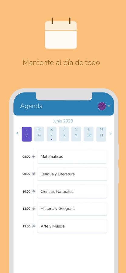 Su agenda es una de las nuevas funcionalidades más destacadas. De un vistazo puedes ver todo lo que los alumnos tienen planificado: horario, eventos, autorizaciones, etc. Además, la información diaria — tareas, actividades, calificaciones, etc. — fácilmente accesible y muy bien organizada, permite realizar un seguimiento ágil y dar respuesta inmediata al centro.