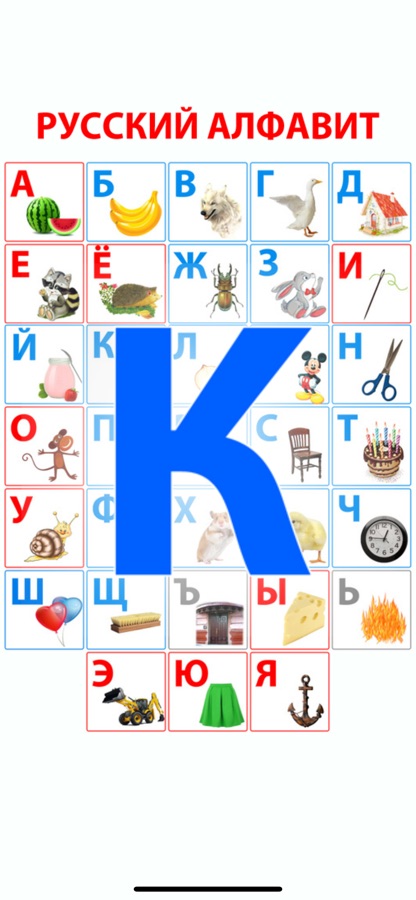 Наше приложение для детей поможет вам в этом! В игре ребёнок познакомится со всеми 33 буквами русского алфавита , услышит их правильное произношение и узнает, в каких словах они встречаются.