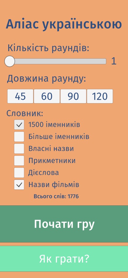 — Обирайте якими словами грати! 2500 найвживаніших іменників, 5000 іменників, власні назви, прикметники і навіть дієслова!