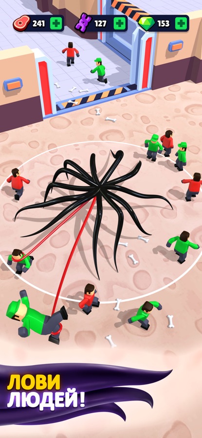 Побеждайте и эволюционируйте: одолевайте людей и развивайтесь, чтобы стать единственным инопланетным владыкой. Улучшайте объем желудка, скорость атаки и радиус ловли инопланетянина, чтобы быстрее пожирать врагов.