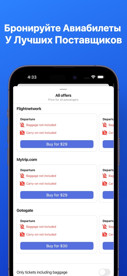 Скачайте лучшее приложение, чтобы присоединиться к тысячам людей в поиске предложений на авиабилеты. Найдите авиабилет в любую точку мира и сэкономьте до 30%!