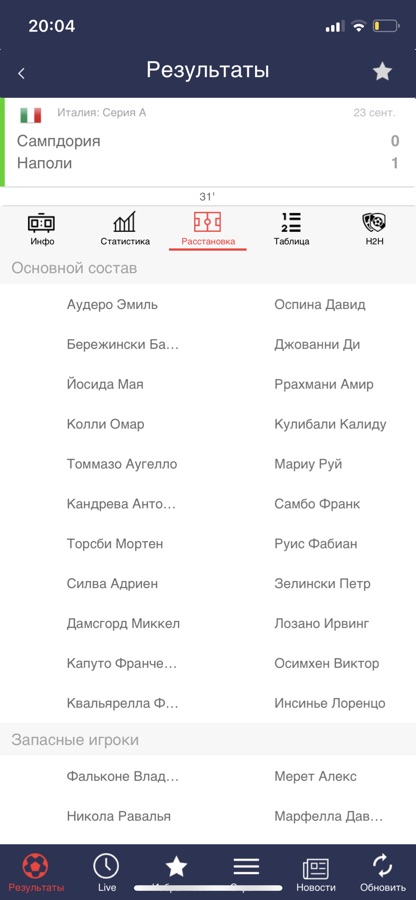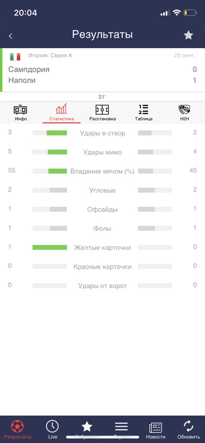 Футбол — наш любимый спорт! Онлайн результаты важнейших событий со всех арен мира в твоем смартфоне!