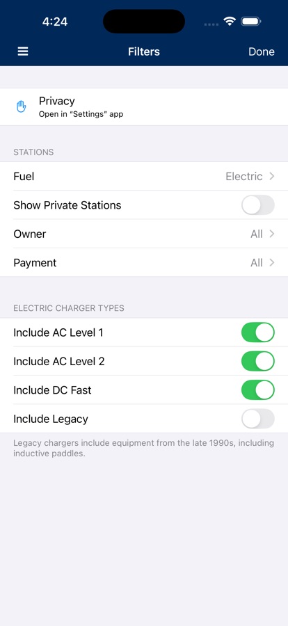 The Alternative Fueling Station Locator app helps you find fueling stations that offer electricity, natural gas, biodiesel, E85, propane, or hydrogen.