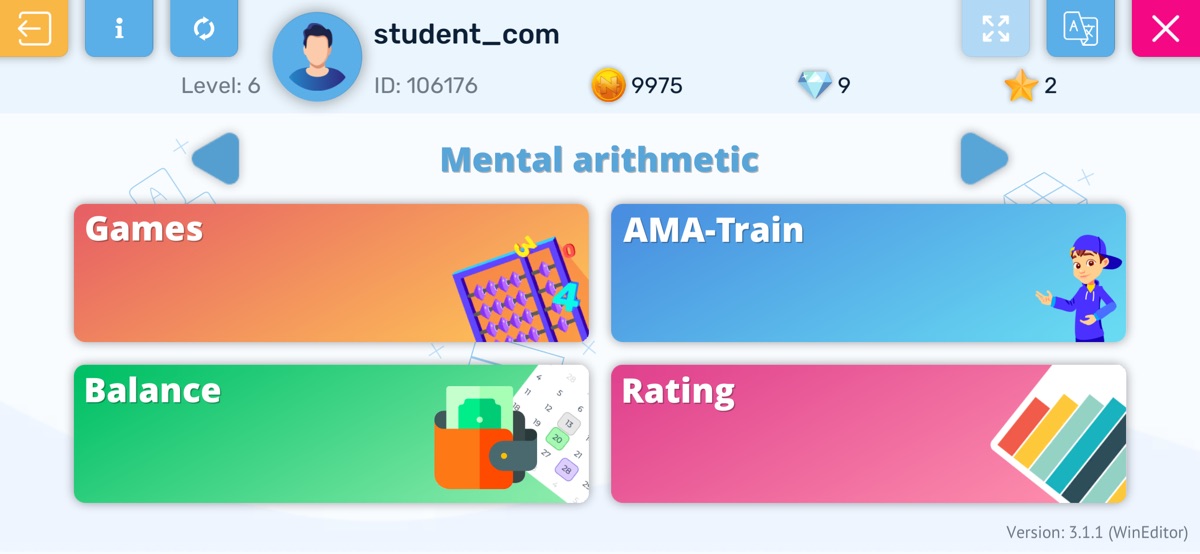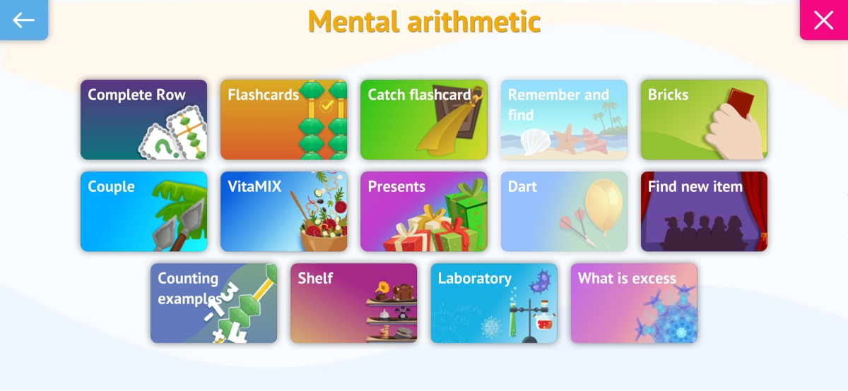 В приложении реализованы задания для курсов: меморика, либерика, ментальная арифметика. Занятия по предложенным методикам помогут улучшить память, развить скорость реакции и мышления. Школы Амакидс, Смартум работают во многих странах. Предложенные развивающие игры призваны сделать процесс обучения учеников более интересным и красочным, по сравнению со стандартным подходом.