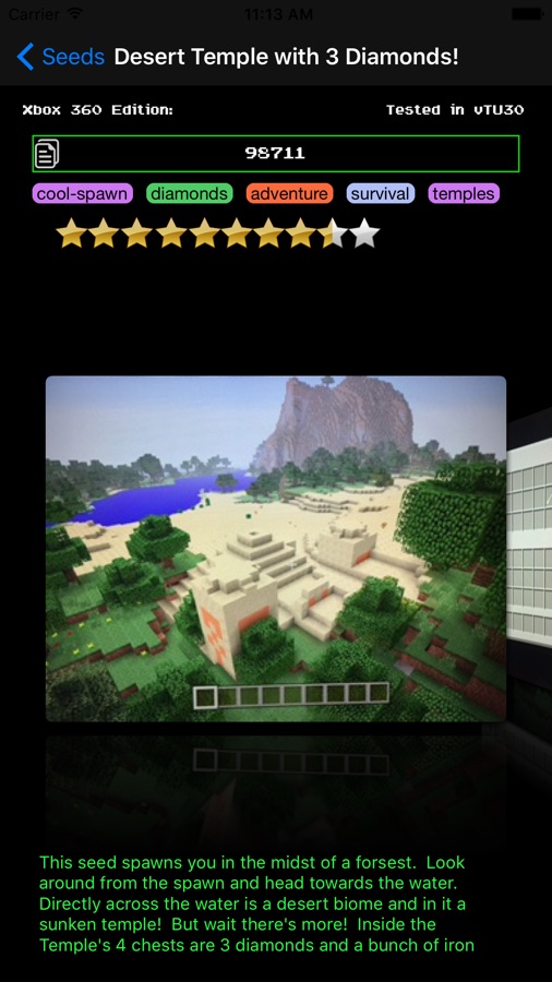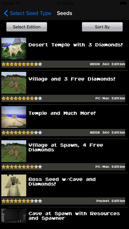 Our Minecraft Seeds are carefully curated, hand picked Minecraft seeds. We test each and every seed before we include them in our app to make sure they work. We only accept the very best, most interesting and unique seeds to add to our collection. If we can’t make sure it works, then we don’t include it. Simple as that.