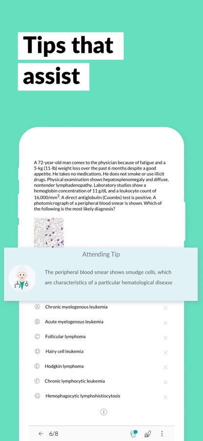 Stay on track: Use Study Mode to guide your learning process. The Key Info and Attending Tip are tools that will help you with challenging questions and nudge you in the right direction when needed.