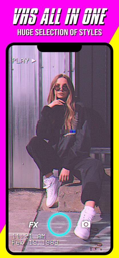 Записывайте видео и делайте радикальные настоящие фотографии 80-х и 90-х с помощью классных эффектов VHS камеры.