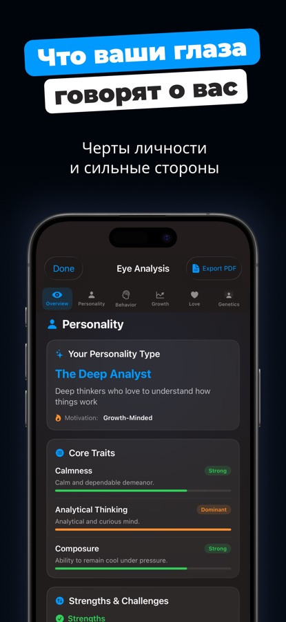 Создаёт простые аналитические заметки на основе узоров радужки.