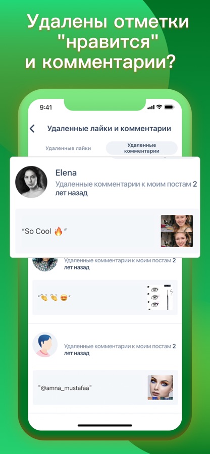 — Узнайте пользователей, которые удалили лайки/комментарии к вашим публикациям.