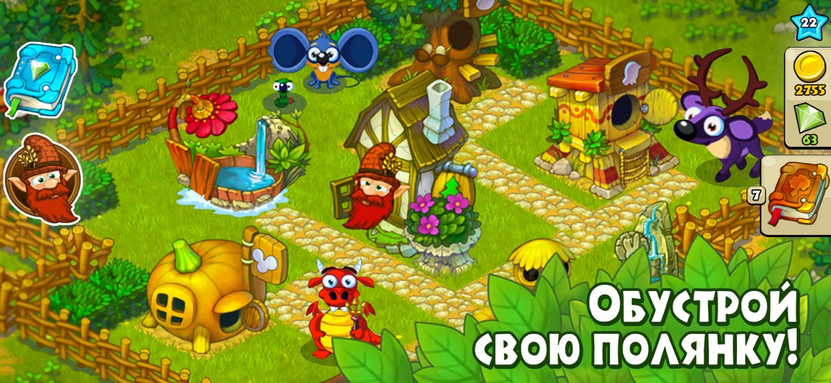 Бедный лесной гном! Коварные зловреды устроили беспорядок на его поляне и распугали всех её обитателей. Вся надежда на тебя: прогони зловредов, убери беспорядок, отстрой деревню и снова засели поляну животными. Зверушки потребуют тщательного ухода: тебе придется подобрать и вырастить еду каждому разборчивому зверю по вкусу и выстроить домики, в которых животные смогут уединиться, чтобы принести потомство. Обустраивай поляну, собирай ресурсы в Волшебном лесу, корми и разводи животных, следи, чтобы их домики оставались чистыми и уютными, а гном — мастер на все руки — поможет тебе в этом. Не забывай о том, что зловреды всё ещё прячутся в лесу и будь начеку!