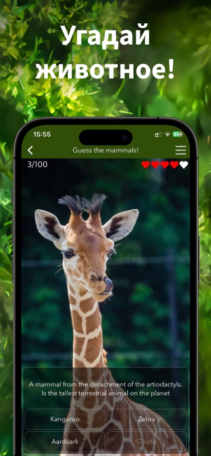 Угадайте всех животных по картинкам и описанию! Проверьте свои знания в бесплатном приложении по зоологии!