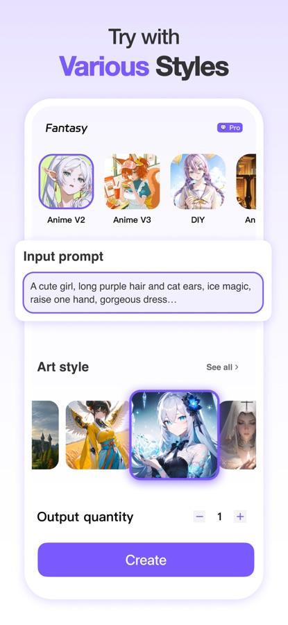 Provides three Art models for you to generate your own style creations, different from other apps only have styles you can choose to generate. Anime diffusion for generating anime style art. Fantasy diffusion for generating abstract colorful AI Art. Stable diffusion for generating concrete reality AI Art. You can choose what you like!