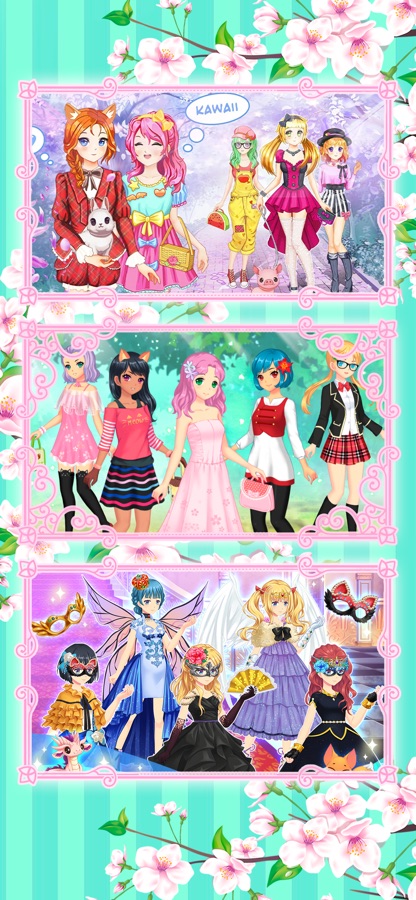 Если ты большой фанат аниме и японской культуры, тогда ты точно оценишь эту игру! Используй чувство стиля и создай кавайных персонажей. Подбери лучший образ для каждого: выбери прическу, головной убор, платья, наряды, обувь, украшения, аксессуары, милых фэнтезийных животных и даже оружие.
