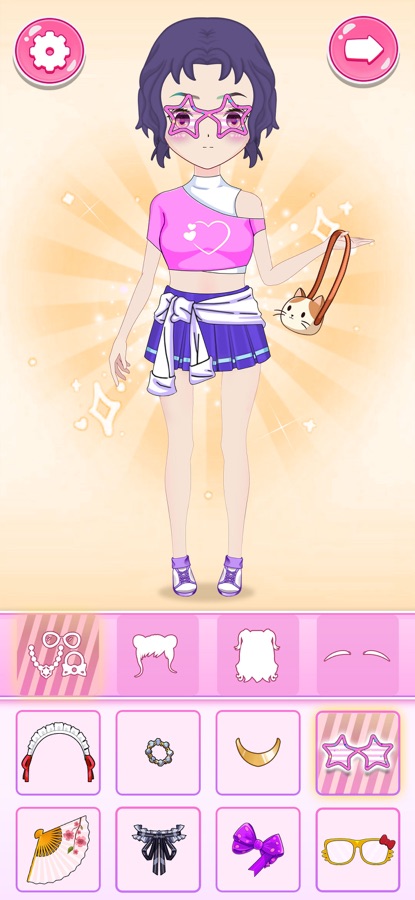вы можете смешивать и сочетать разные стили, такие как одежда, магические костюмы или повседневные наряды. есть много цветов и вариантов, чтобы сделать вашего персонажа уникальным. как только вы закончите, вы можете выбрать классный фон для своего персонажа. в эту игру легко играть, и она идеально подходит для всех, кто любит аниме и моду!