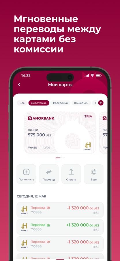 • Перевод денег с карт Tinkoff на TRIA Humo