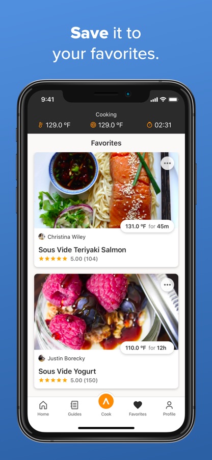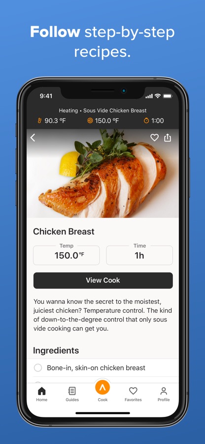 Browse the largest collection of sous vide recipes by Michelin star chefs and home cooks just like you. Then simply connect your cooker to the app and start, stop, and monitor your cook right from your mobile phone. Feeling inspired? Create and share your own recipes and go viral on the ‘gram. Whatever your pleasure, the Anova Culinary app is the place for everything sous vide.