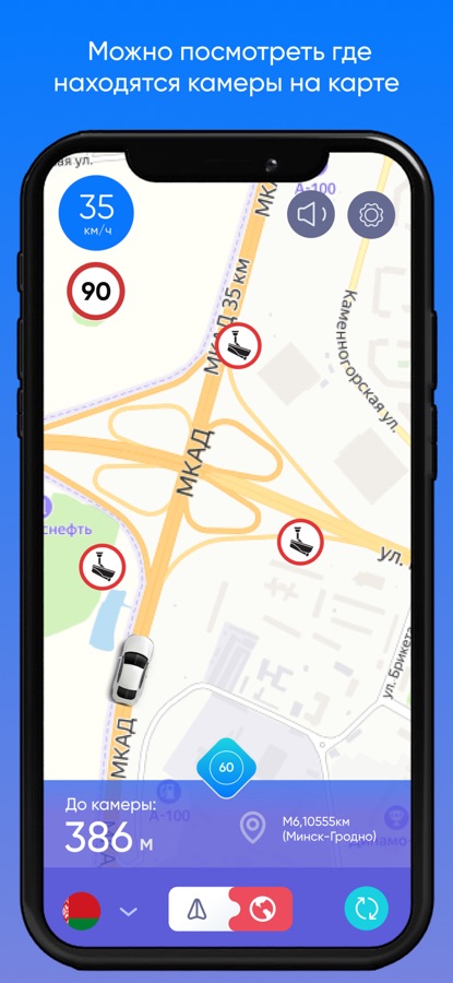 Режим Радара и Карты Антирадара предупредит Вас о тысячах камер на дорогах и избавит от штрафов, если впереди есть камера.