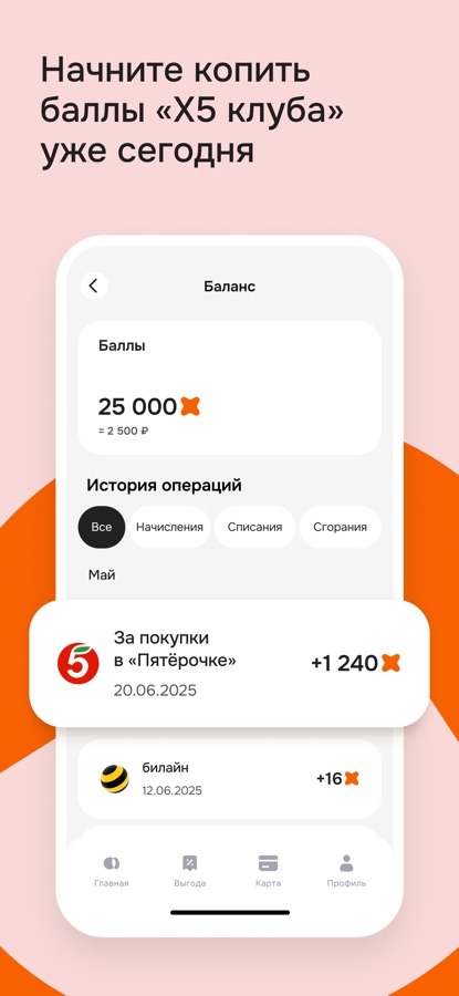 Списывайте баллы «X5 Клуба» на: