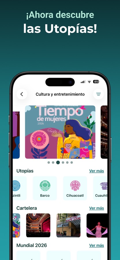 La aplicación que te conecta con la Ciudad. App CDMX está diseñada para facilitar tu día a día. Consulta en tiempo real las opciones de transporte público, tanto de la Ciudad como del área metropolitana. Explora la cartelera, visita las Utopías, lleva tus documentos digitales contigo y mucho más. ¡Todo está aquí, al alcance de tu mano!